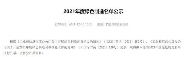 “国家级绿色工厂”创建活动是由国家工信部组织开展的全国性评选活动,旨在贯彻落实《中国制造2025》和《工业绿色发展规划》,加快推动绿色制造体系建设,打造绿色制造企业先进典型“绿色工厂”是指实行用地集约化、生产清洁化、废物资源化、产品环保化,并且在生产过程中没有产生污染的工厂。