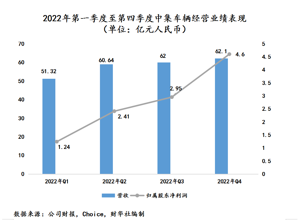 2022年,中集车辆全年营收为236.21亿元,归属股东净利润为11.18亿元,同比增长24.11%,扣非净利润则为9.16亿元,同比增长43.99%。