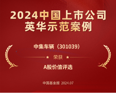 7月10日,由《中国基金报》主办的“2024中国资本市场发展论坛暨上市公司论坛、私募基金论坛”于上海举行。会上,2024中国上市公司英华示范案例评选结果出炉。中集车辆(集团)股份有限公司(301039.SZ)荣获“A股价值奖”。