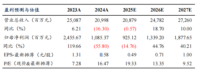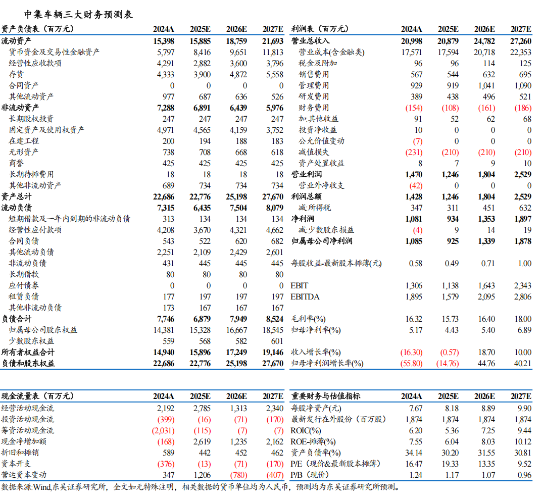 考虑到北美半挂车市场尚未企稳回升,我们下调公司 2025/2026 年盈利预测至 9.25/13.39 亿元(原 10.91/15.03 亿元),基本维持 2027 年盈利预测 18.78 亿元,2025~2027 年对应 EPS 分别0.49/0.71/1.00 元,对应 PE 为 19.33/13.35/ 9.52 倍,考虑到公司龙头地位显著,25 年有望维持高分红,当前估值处于低位,26 年有望企稳回升,维持“买入”评级。