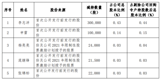 持有公司股份1,563,000股(占公司总股本比例2.24%,占剔除公司回购专户持股数后总股本比例2.31%)的董事、总经理李志洋计划在公告披露之日起15个交易日后的3个月内以集中竞价交易方式减持公司股份不超过300,000股(占公司总股本比例0.43%,占剔除公司回购专户持股数后总股本比例0.44%)。