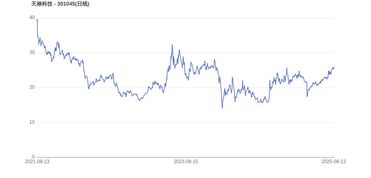 天禄科技自2021年8月13日上市至今,已迎来4周年。从上市首日收盘价为39.42元、市值40.66亿元,到如今市值达到28.27亿元。