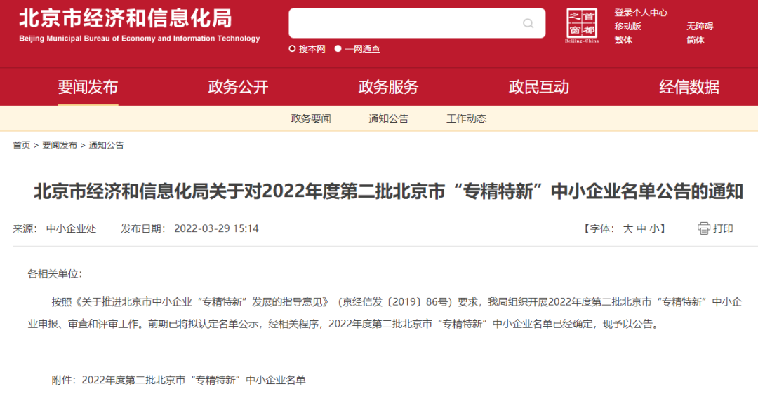 早在今年3月份,北京市经济和信息化局公布的2022年度第二批北京市“专精特新”中小企业名单,北京义翘神州科技股份有限公司就位列其中。
