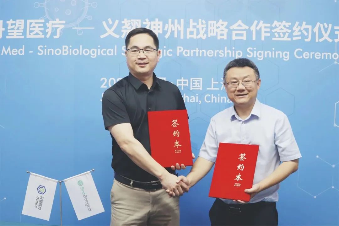 丹望医疗创始人华国强博士(图左)与义翘神州总经理张杰博士(图右)进行签约仪式