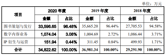 公司的最大问题是来钱渠道单一,其图书策划与发行一项在这三年的占比为94.58%、96.44%、96.48%。
