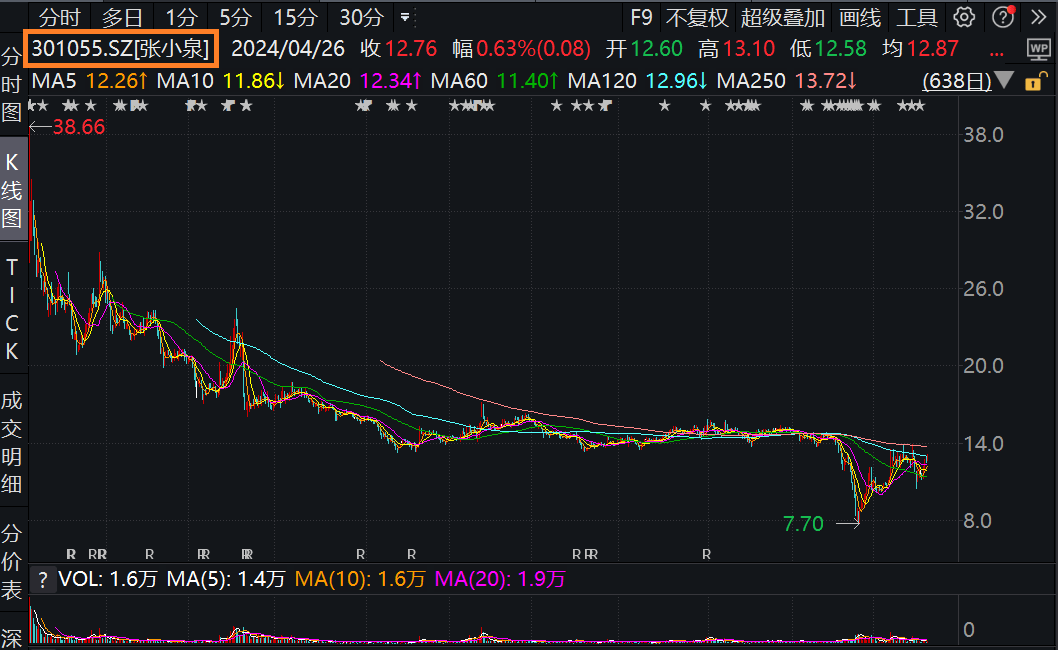 截至2024年4月26日,张小泉的股价为12.76元,公司市值约20亿元,较上市首日的53亿元市值蒸发了逾30亿元。
