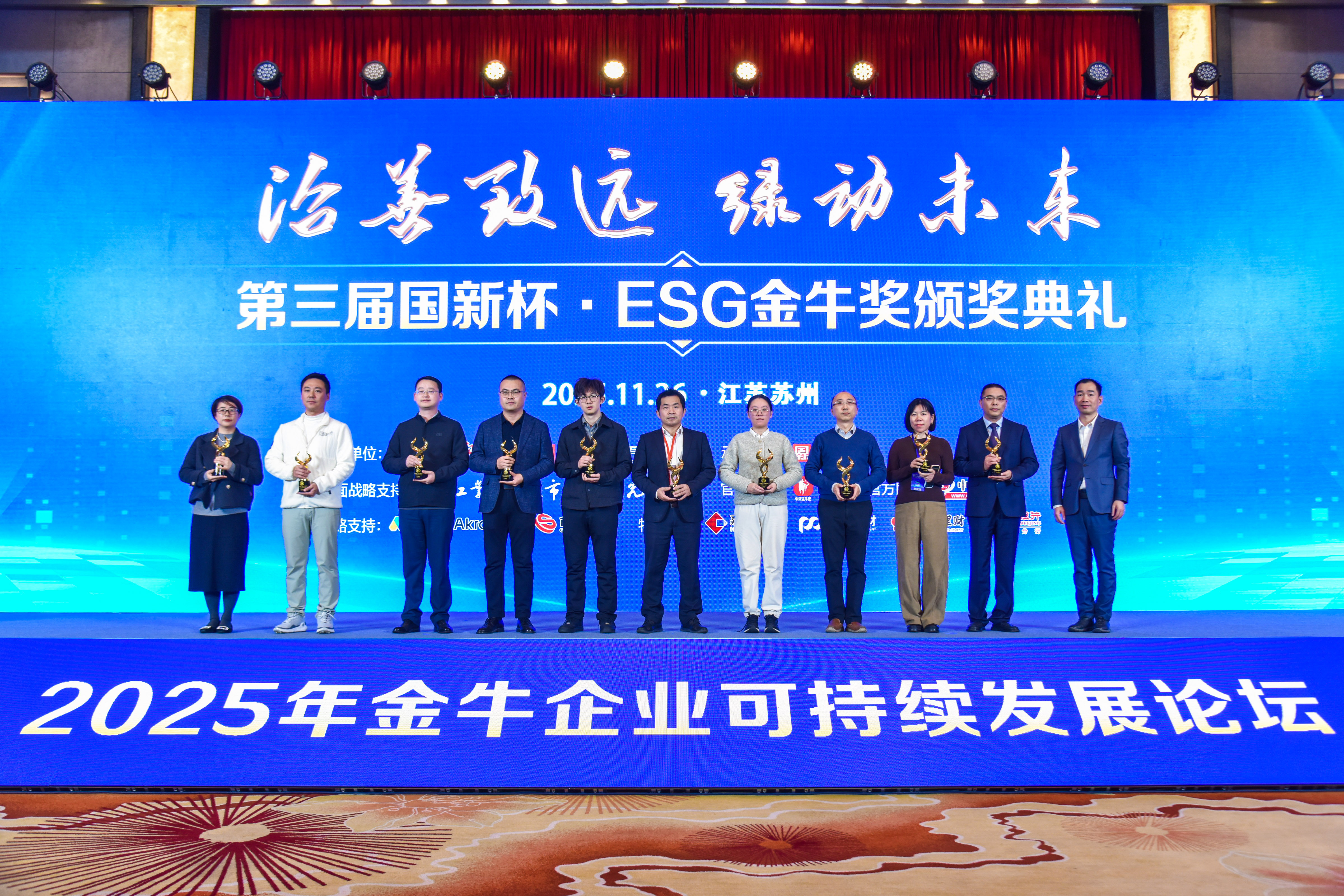 中证报中证网讯(王珞)11月26日,由中国证券报、 中国国新 主办, 国新证券 承办的2025年金牛企业可持续发展论坛暨第三届国新杯·ESG金牛奖颁奖典礼在苏州举行。