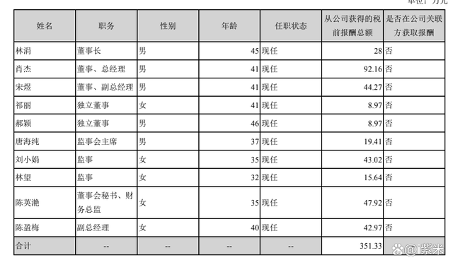 年报显示,报告期内公司实际支付董事、监事、高级管理人员报酬共351.33万元,董事长林涓2021年从公司获得报酬为28万元,董事、总经理肖杰2021年从公司获得报酬为92.16万元,董事会秘书、财务总监陈英滟2021年在本公司领取薪酬为47.92万元。