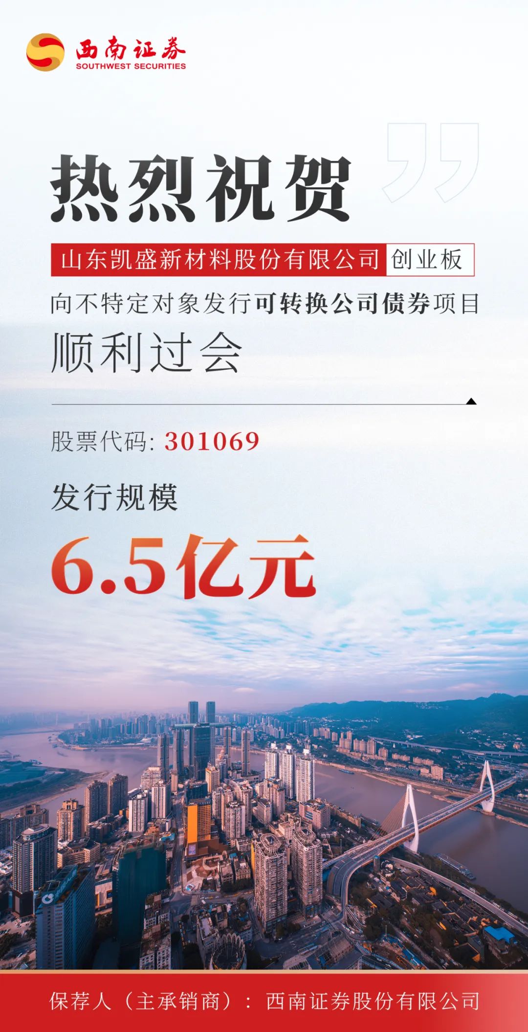 热烈祝贺山东凯盛新材向不特定对象发行可转换公司债券项目顺利过会