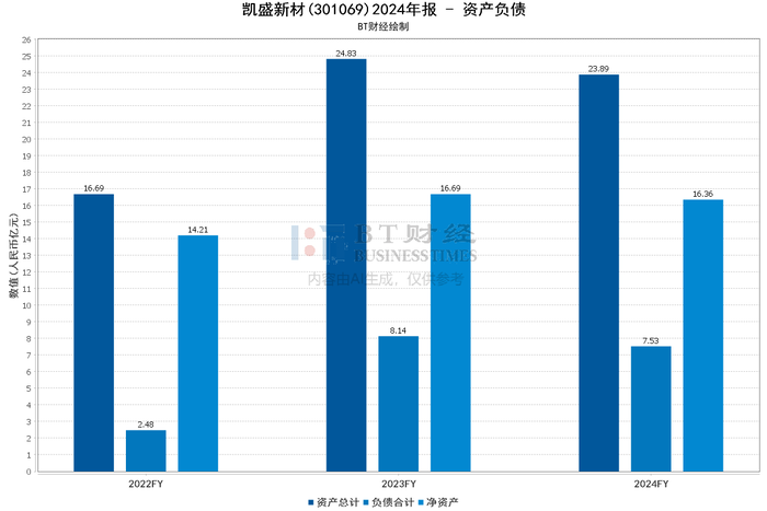 从资产负债数据来看,2024年末资产总计23.89亿元,较期初24.83亿元减少3.79%;负债合计期末余额7.53亿元,较期初8.14亿元下降7.54%;资产负债率期末为31.51%,期初为32.78%,略有下降,表明公司偿债压力稍有减轻。归属于上市公司股东的净资产期末余额16.36亿元,较期初16.65亿元减少1.76%。货币资金期末4.3亿元,占总资产18.00%,较期初占比减少16.21%,主要系增加理财持有规模所致;应收账款期末1.4亿元,占总资产5.84%,较期初占比增加2.36%;交易性金融资产期末4.47亿元,占总资产18.69%,较期初占比增加14.95%,也是因增加理财持有规模。
