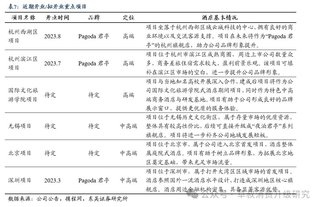 成立产业基金,持续孵化潜力新项目。2023年12月18日公司公告,公司控股二级子公司君荟投资拟设立多支酒店产业私募投资基金,总规模不超过5亿元,其中君荟投资参与基金投资总额不超过5000万元,存续期限自基金成立日起5年,前1年为投资期,投资期届满后不再新增对外投资,后4年为退出期。主要通过对商业/酒店管理公司进行股权投资及其他投资,并开展对酒店物业项目的运营管理,物业项目应位于直辖市、重点省会城市以及强二线城市。公司通过产业基金在体外进行新门店培育,加快中高端精选服务酒店的扩张步伐,同时避免直营门店爬坡期拖累公司业绩的风险,提高公司盈利能力。