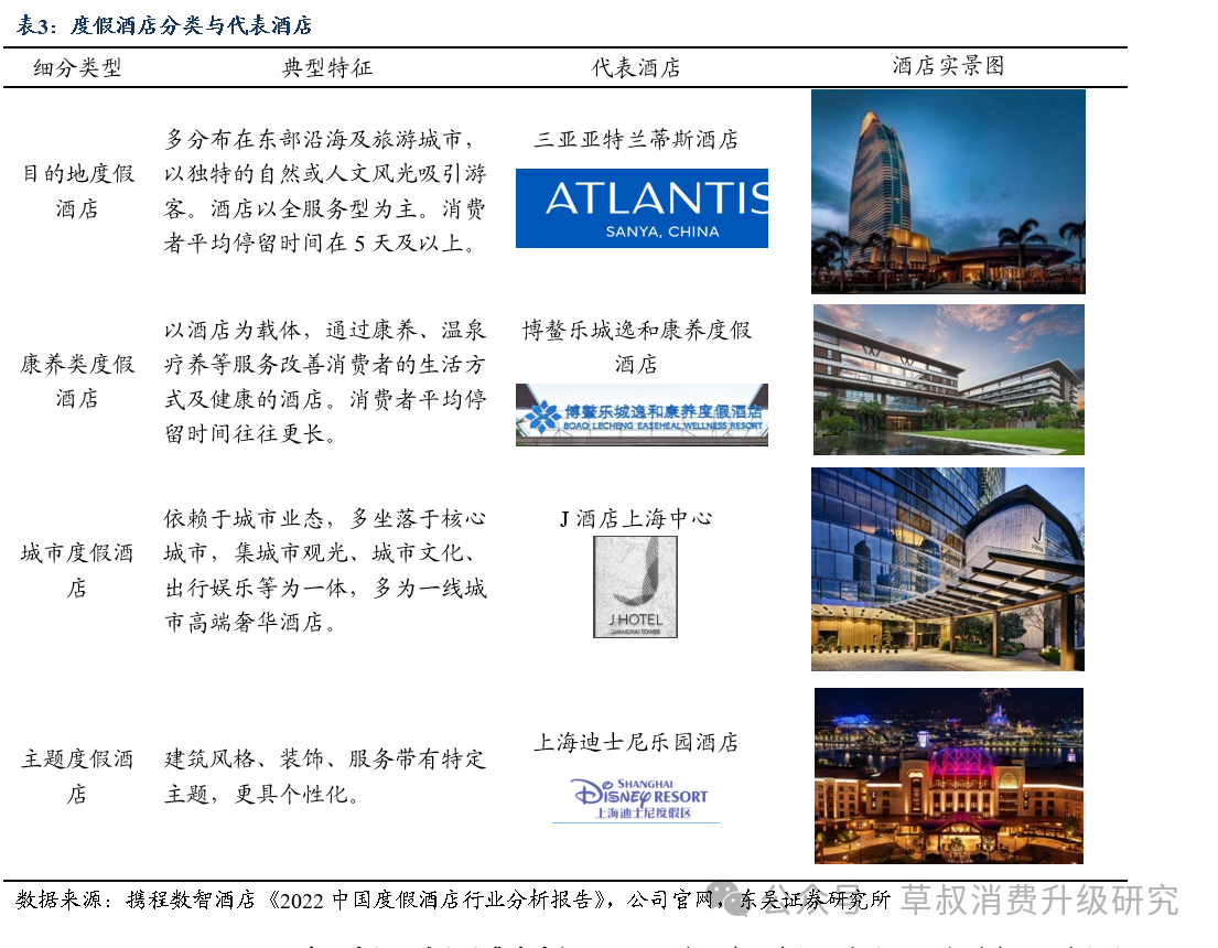 度假酒店客群以休闲度假游客为主,多依托于核心景区与重点城市,建立完善的客房设施,为游客提供高品质服务。度假酒店可以细分为目的地度假酒店、康养类度假酒店、城市度假酒店以及主题度假酒店。截至2022年10月,全国度假酒店总数在1万家以内(不包括港澳台)。其中,目的地度假酒店在我国度假酒店市场占绝对主流,而依托于我国丰富的温泉疗养资源及康业服务的康养类度假酒店位居第二;疫情以来,城市度假酒店势头正猛,发展较快;而设计、定位独树一帜的主题度假酒店在我国仍处于探索发展阶段。