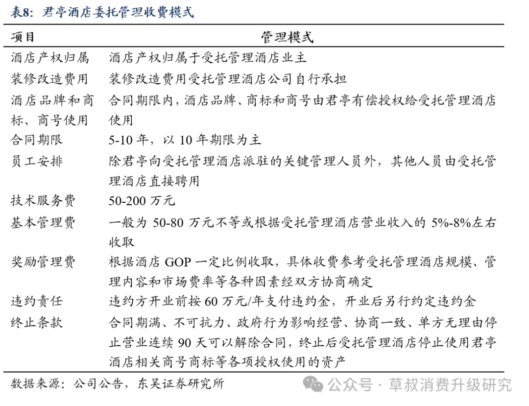 委管为辅拓展全国市场。君亭酒店利用委托管理模式进行全国化扩张。君亭酒店委托管理采取“基本管理费+奖励管理费”收费模式,基本管理费一般为50-80万元不等或根据受托管理酒店营业收入的5%-8%左右收取,奖励管理费根据酒店GOP一定比例收取,具体收费参考受托管理酒店规模、管理内容和市场费率等各种因素。基本管理费奠定收费基础,阶梯式奖励收费模式与酒店经营业绩绑定,有更高的抗压能力应对行业波动。