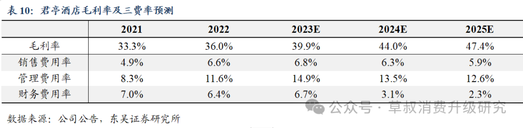 预计公司三费率有望逐年降低。随着出行恢复、产品结构优化,销售费用率、财务费用率稳中有降;2023年新租赁准则导致管理费用率上行,未来随着直营项目体外培育,管理费用率有望回落。