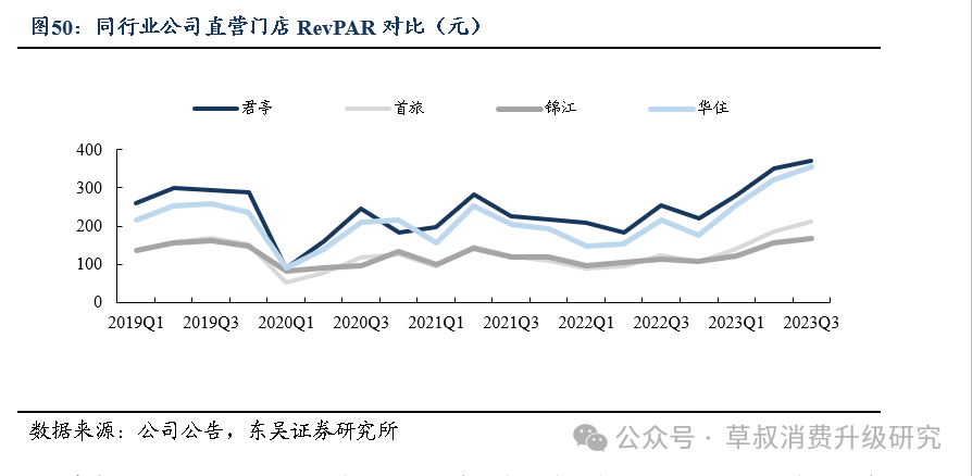 直营委管打造稀缺品牌力,全国市场屡建标杆酒店彰显实力:1)产品:“君亭”,“君澜”等实现中高端高端品牌全覆盖。2023Q3末君亭/君澜/景澜开业酒店数分别为113/63/37家,君亭首创“BAS”模式,提供差异化精选服务;君澜深耕高端度假领域,打造优质度假圈。2)运营:“一店一品”差异化运营,直营单店模式成熟。直营单店盈利能力高于可比公司水平,“一店一品”铸造品牌差异化竞争优势,测算成都Pagoda成熟期年净利润可达0.2亿元。3)扩张:直营门店高质量扩张打造稀缺品牌力,盈利能力突出。直营聚焦核心城市与项目,站稳标杆地位,直营门店ADR带动RevPAR领先行业,盈利能力持续提升。委托管理为辅拓展全国市场。成立产业基金孵化新项目,平滑开店爬坡对财务影响。