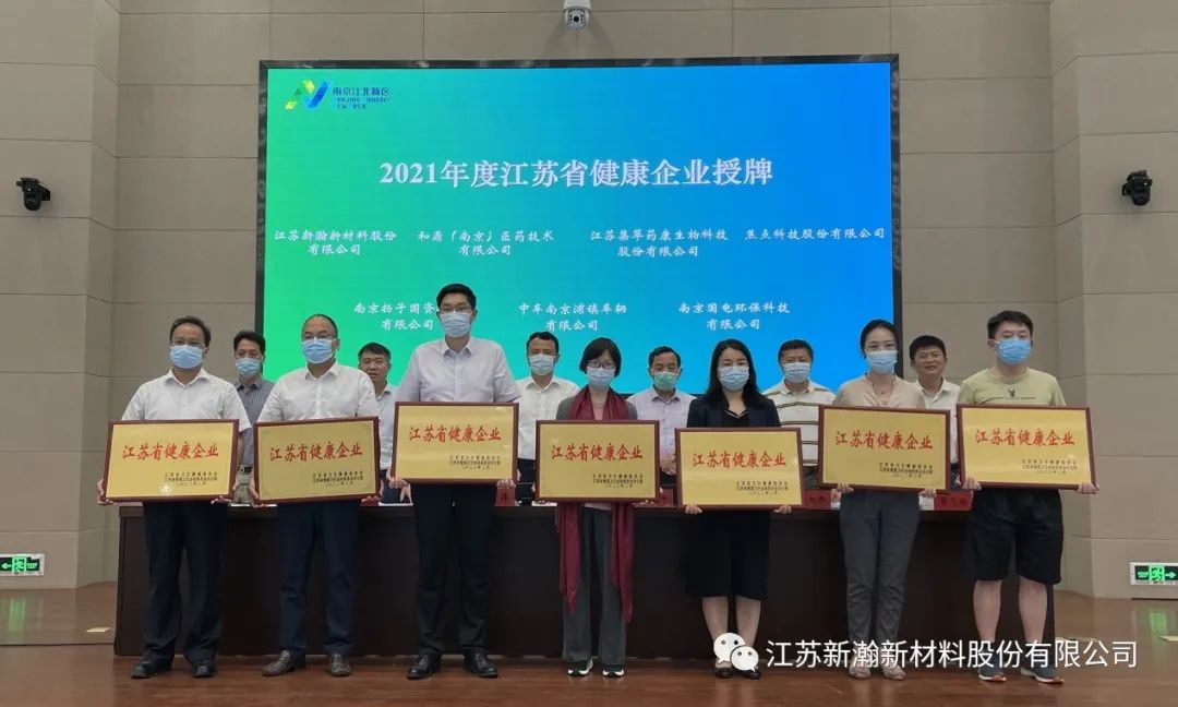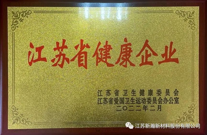 2022年2月,江苏省卫生健康委员会、江苏省爱国卫生运动委员会办公室联合印发《关于确认2021年度江苏省健康企业名单的通知》(苏卫职健〔2022〕1号),确认223家单位为2021年度江苏省健康企业。其中,南京市18家单位,江苏新瀚新材料股份有限公司(以下简称“我公司”)凭借多年的努力成为其中一份子。