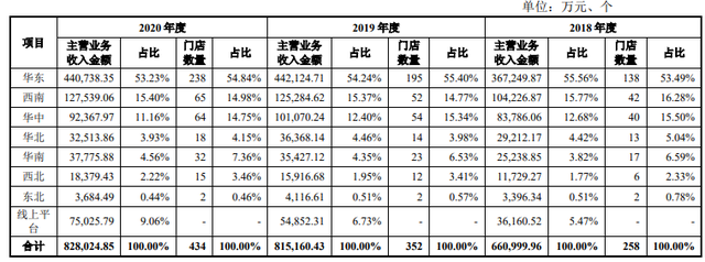 但理想很丰满,现实很骨感,其线上业务拓展十分缓慢。2018-2020年,公司线上营收分别只有3.62亿元、5.49亿元和7.50亿元,占比分别为5.42%、6.65%和8.98%。