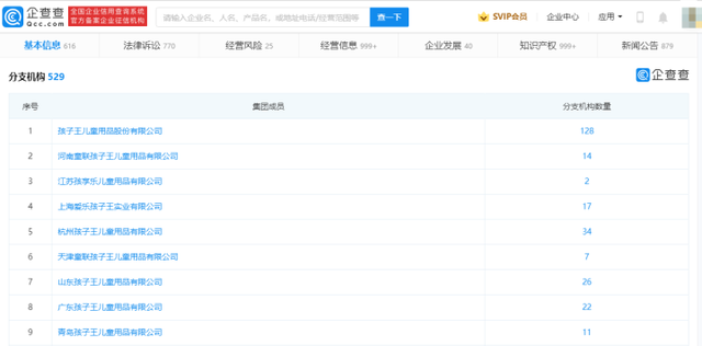 据了解,孩子王全称孩子王儿童用品股份有限公司,创立于2009年,总部位于江苏南京。天目新闻记者从其官网上看到,孩子王已在全国17个省3个直辖市、累计超180个城市开设超500家大型数字化门店。另据APP显示,孩子王目前共有超过五百家分支机构。
