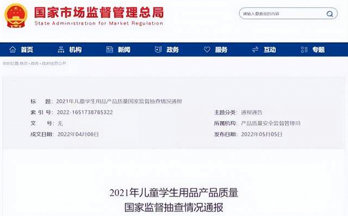 市场监管总局于近日公布了2021年儿童学生用品产品质量国家监督抽查情况通报,通报指出,本次抽查了2050家企业生产的2186批次儿童学生用品,发现297批次产品不合格。