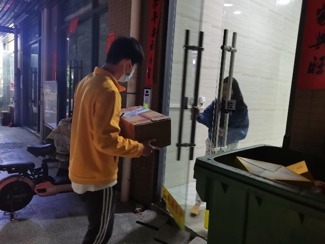 寒风凛冽,且没有交通工具,孩子王人不畏困难,步行、小板车、共享单车、自家电动车……一群人一条心,粤战粤燃,“服务”好每一个家庭,为“动态清零”贡献每一份力量。