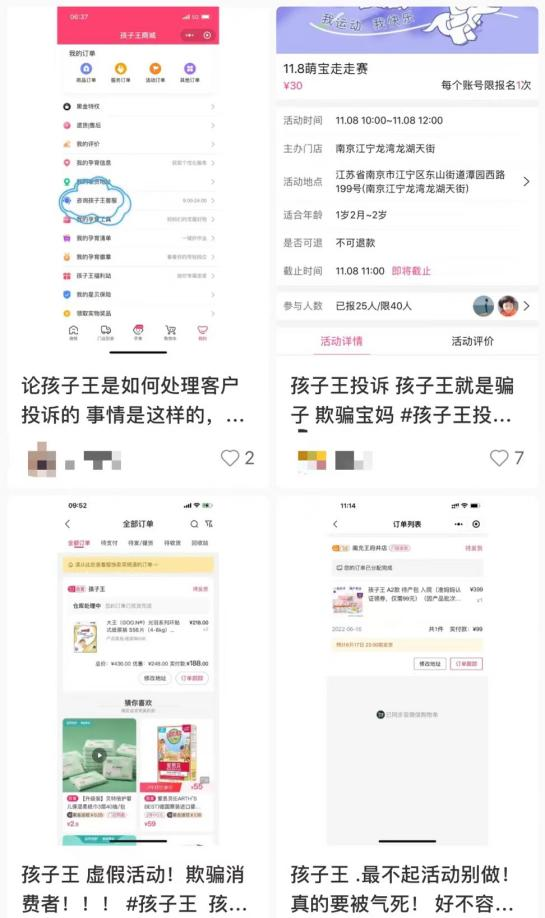 值得注意的是,在黑猫投诉平台上,孩子王移动端APP、微商城等线上渠道也遭到了不少家长的投诉,其中包括“宝宝霜变质、有异味”、“销售假货”、“虚假发货”等。