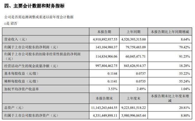 上半年,孩子王实现营收49.11亿元,同比增长8.64%;归属于上市公司股东的净利润1.43亿元,同比增长79.42%;归属于上市公司股东的扣非净利润1.15亿元,同比增长91.25%。公司拟向全体股东每10股派发现金红利0.20元(含税)。