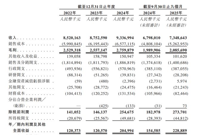 2024年及2025年前三季度,孩子王收入分别为67.98亿元和73.49亿元,同比微增8.1%,毛利分别为19.9亿元和20.86亿元,毛利率分别为29.3%和28.4%,利润则分别为1.55亿元及2.29亿元,同比增长47.7%。营收和利润均有所增长,但毛利率出现一定程度下滑。对此,孩子王在招股书中解释称,毛利率下滑归因于母婴童业务的毛利减少,而这主要由于毛利率均较低的分销模式及加盟模式的收入贡献增加。