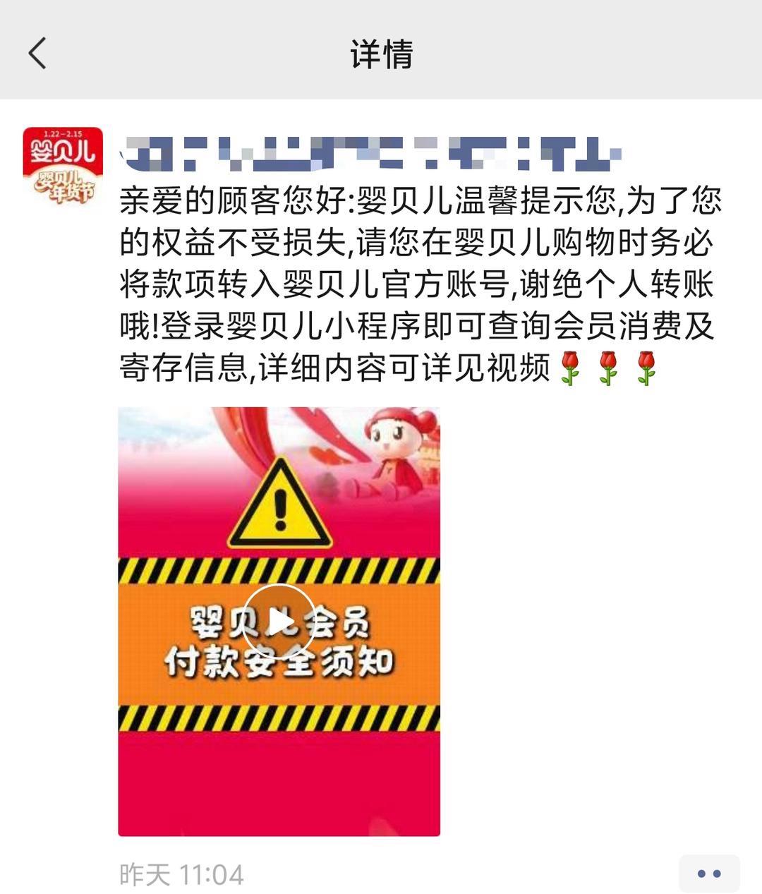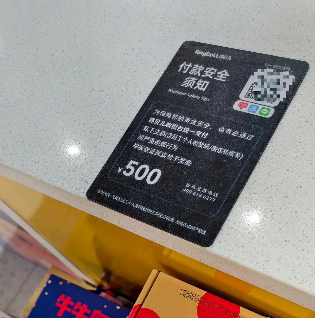 记者走访发现,济南本土母婴品牌婴贝儿已针对行业漏洞做出行动,多家门店收银台均张贴“付款安全须知”,明确“务必通过收银台统一支付,私下交易属于严重违规行为,举报查证属实给予奖励500元。”据店内工作人员介绍,2月10日公司通过门店、区域、大区多层级工作群,向全员下发禁止员工个人收款的通知,大家还进行了朋友圈转发,提醒消费者不要进行个人转账,从收款环节筑牢消费安全防线。