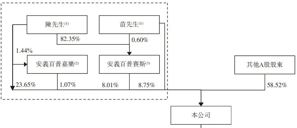 份,陈宜顶先生、苗景贇先生、安义百普赛斯及安义百普嘉乐共同构成公司的控股股东集团,合计持股约41.48%。