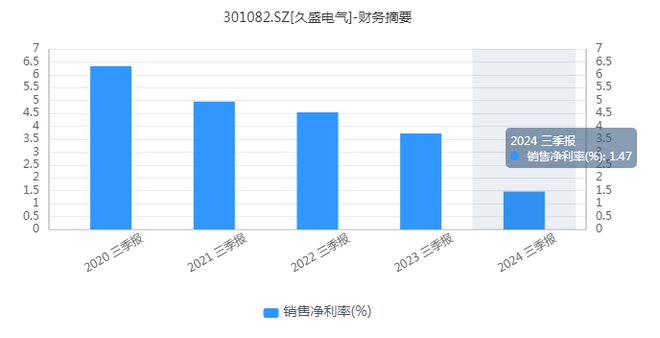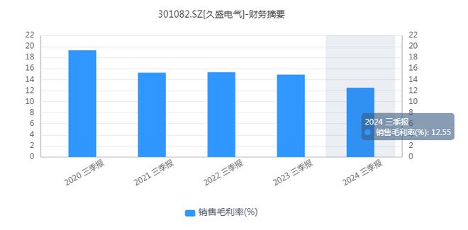 在盈利能力方面,久盛电气毛利率和净利率的下滑也较为明显。从2024年三季报数据来看,毛利率同比减少15.91%;净利率同比减少60.52%。这反映出公司在成本控制和产品定价方面面临压力,可能受到原材料价格波动、市场竞争加剧等因素影响。