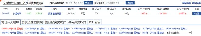 这也是久盛电气连续第7天登上龙虎榜。近6个月,公司已累计上榜20次。