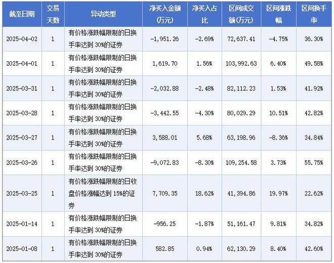 数据显示,今年以来,久盛电气共计登上龙虎榜9次,主要异动类型都是“有价格涨跌幅限制的日换手率达到30%的证券”,平均换手率接近40%。