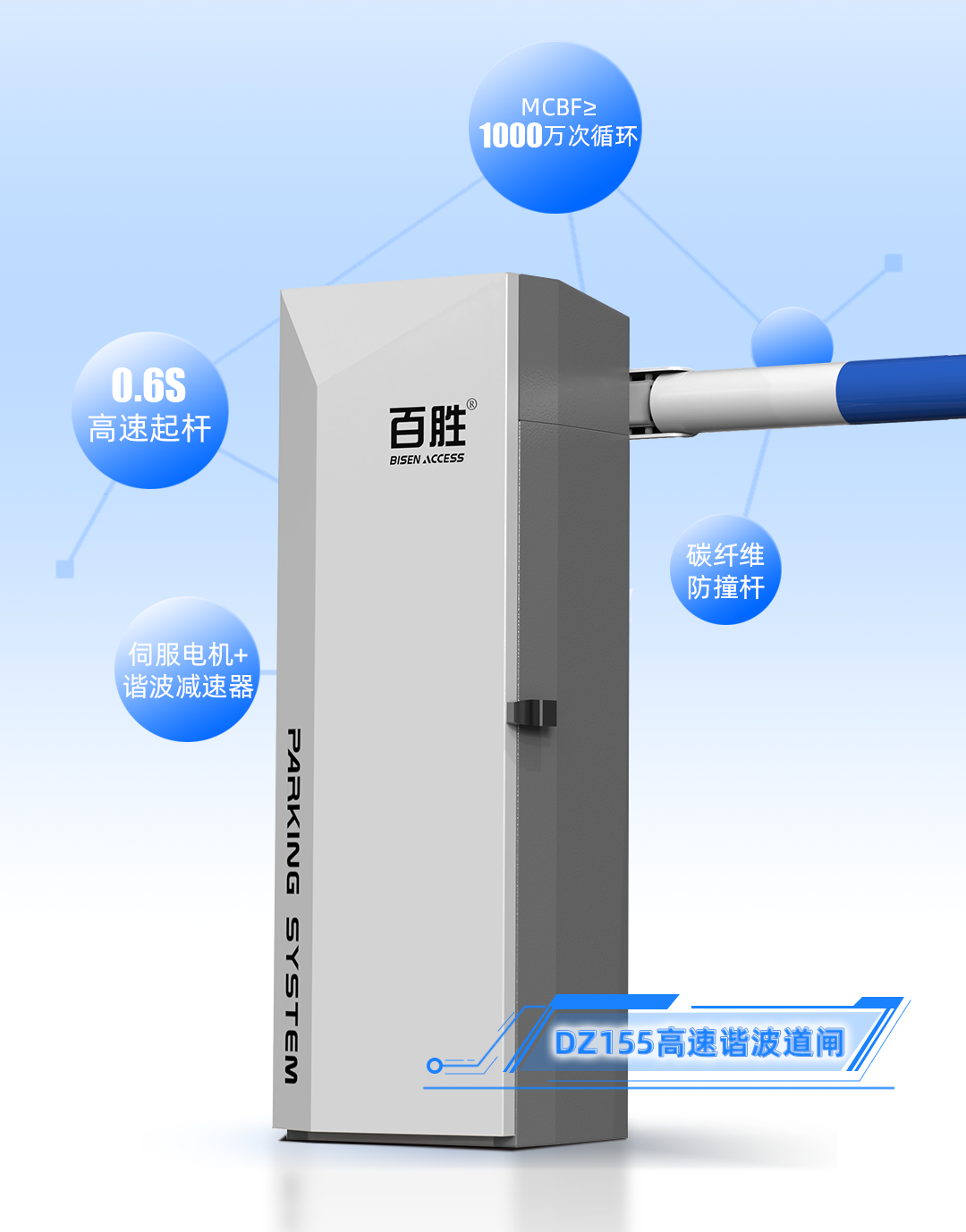 所有通道均采用百胜DZ155高速谐波道闸,专为高速公路、交通枢纽场景打造,MCBF超1000万次,起杆速度最快0.6S。车主驾车靠近的瞬间,道闸已同步响应,真正实现"车到闸开"的丝滑体验。