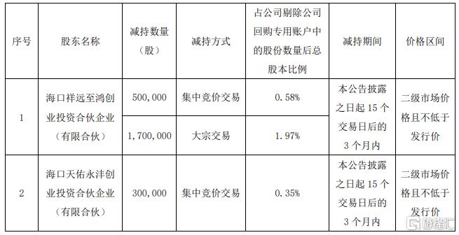 根据公告显示,控股股东之一致行动人祥远至鸿持有公司股份9,518,698股(占总股本比例11.05%),计划减持不超过220万股,占总股本2.55%;一致行动人天佑永沣持有公司股份1,658,671股(占公司总股本比例1.93%),计划减持不超过30万股,占总股本0.35%。