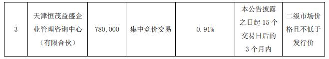 此外,持股5%以上股东恒茂益盛持有公司股份5,067,914股(占公司总股本比例5.88%),计划减持不超过78万股,占总股本0.91%。
