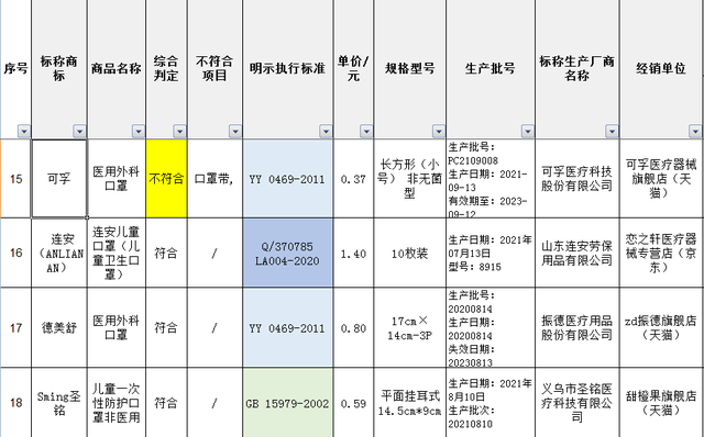 鳌头财经发现,可孚医用外科口罩(生产批号:PC2109008、生产日期:2021-09-13、有效期至:2023-09-12)(生产日期:2021-07-17、生产批号:PC2107007)共有两批次口罩带不符合明示产品标准。