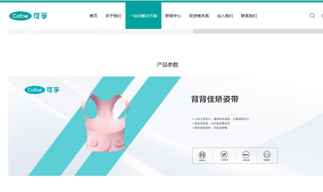 “背背佳”为可孚医疗(301087.SZ)旗下一款矫姿带产品,归为康复辅具类,并非医疗器械,仅是消费级产品。公司官网显示,矫姿带是一款通过生物力学干预改善体态的穿戴式物理类辅助工具,主要采用弹性材料在肩背施加向后向下的定向牵引力,从而达到对抗含胸驼背的前倾力矩,强制打开胸椎曲度,减轻脊柱压力。