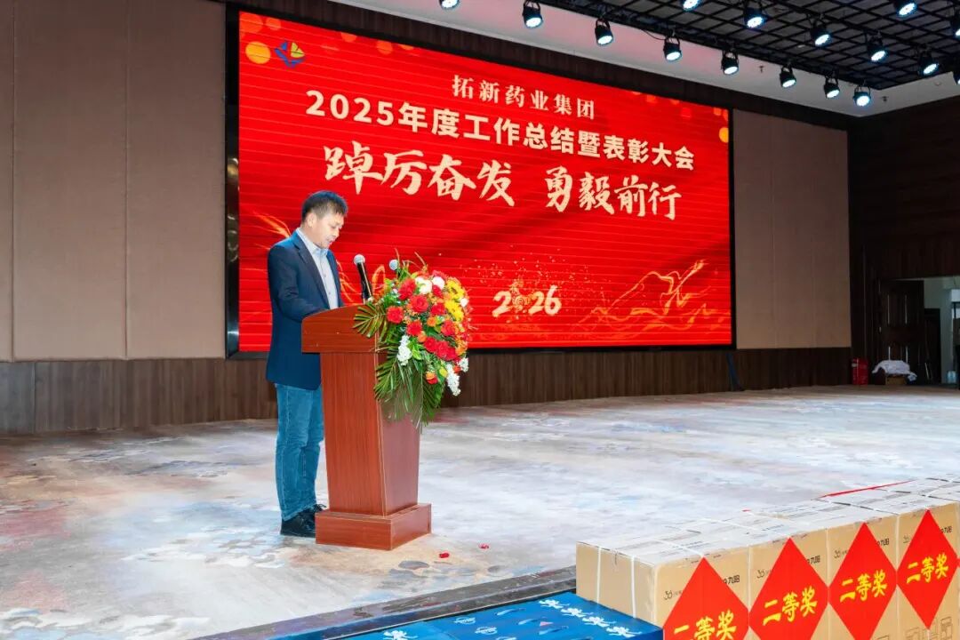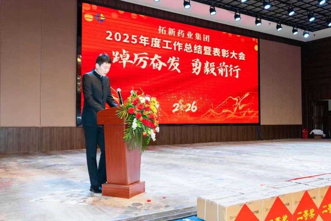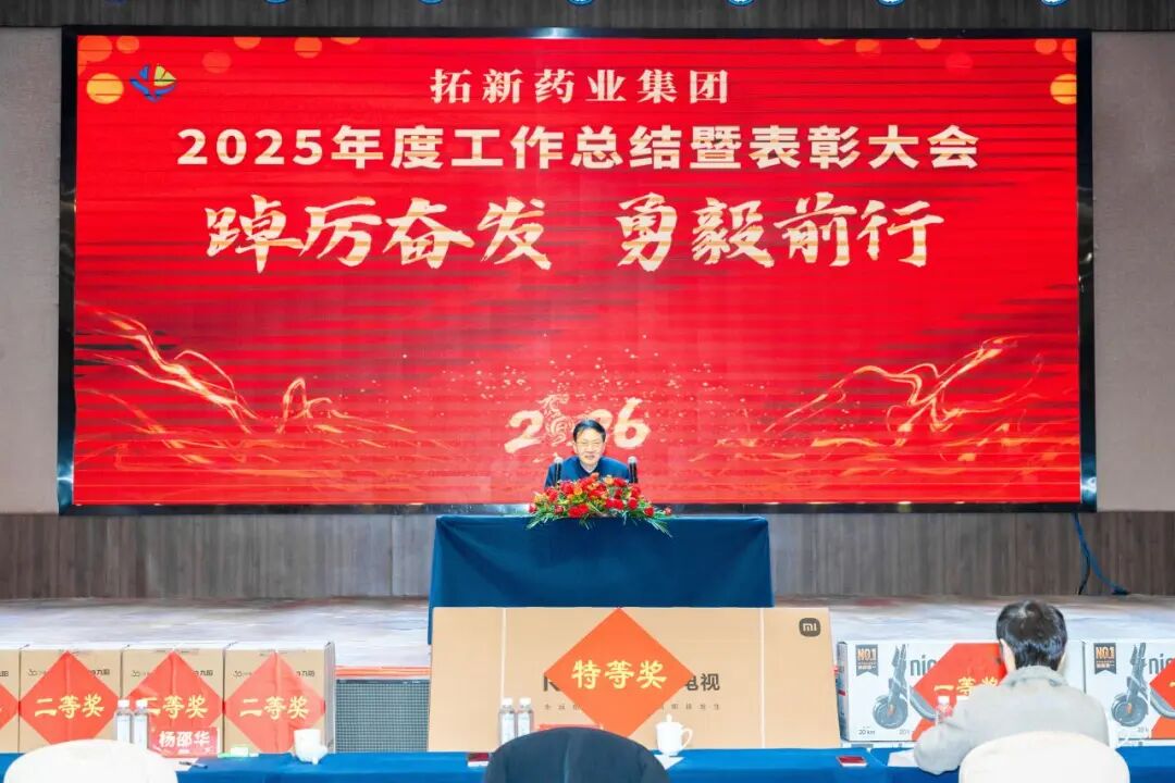 春潮涌动,万象更新。2026年2月6日,拓新药业集团“踔厉奋发、勇毅前行”2025年度工作总结暨表彰大会在国际饭店隆重举行。集团董事长、总裁、高管团队与来自各子公司、部门的员工代表济济一堂,共同回顾2025年的奋斗足迹,擘画2026年的崭新蓝图。