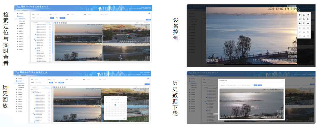 在监控视频可看、可控的基础上,深城交团队配合新区积极探索视频监控在城市治理场景中的嵌入式应用。通过部署车辆违停识别、道路拥堵识别、人流密度识别、海岸线人靠岸、船靠边识别等多类视频AI智能分析算法,实现车辆违停、道路拥堵、人员异常聚集、水域事件监测等各类事件预警,将监控摄像头嵌入各业务场景。