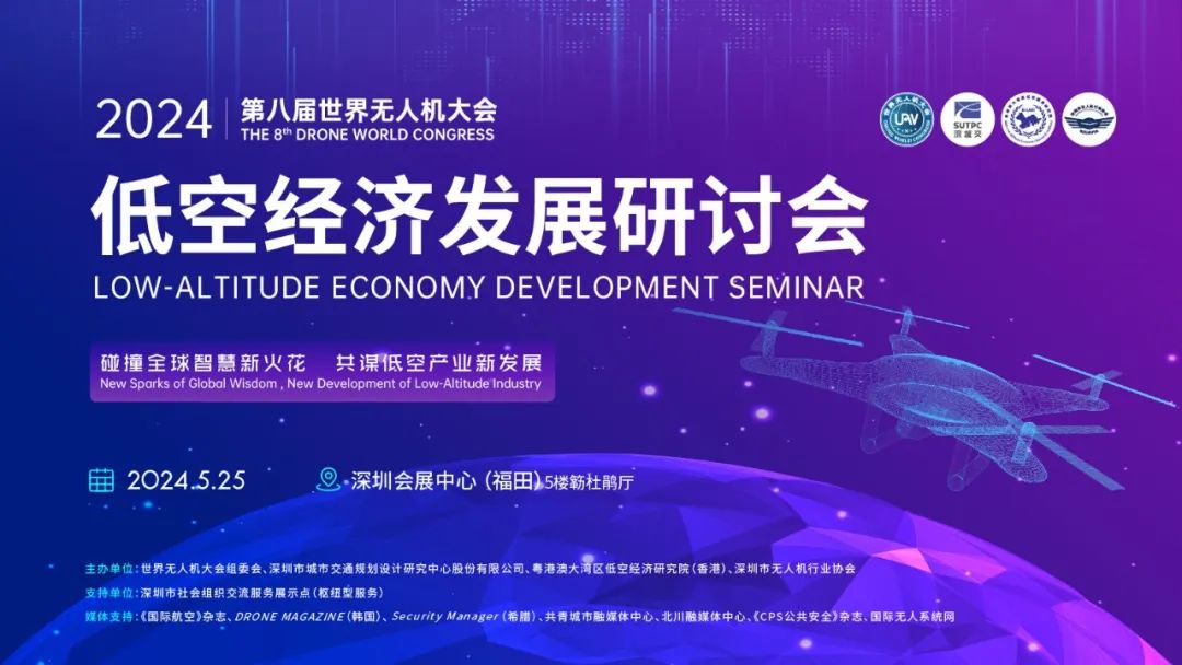 5月25日下午13:30,由第八届世界无人机大会组委会、深圳市城市交通规划设计研究中心股份有限公司、粤港澳大湾区低空经济研究院(香港)、深圳市无人机行业协会联合主办的“第八届世界无人机大会·低空经济发展研讨会”将在深圳会展中心 5 楼簕杜鹃厅通过线上直播、线下现场参会结合的方式举行。