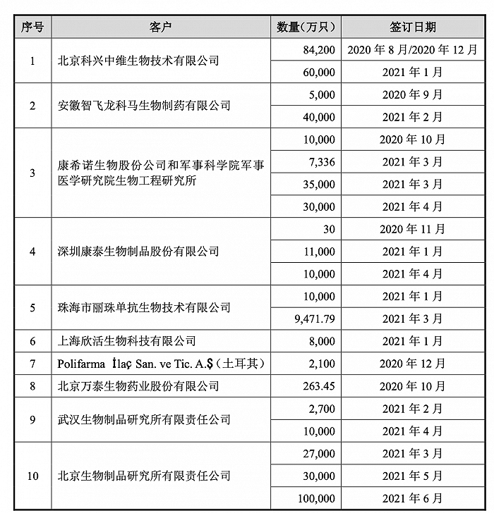 疫苗用胶塞销售大幅增长,贡献了华兰股份上半年的业绩增长。截至10月25日,华兰疫苗已签署的新冠疫苗用胶塞合同累计金额超过9亿元,累计订单数量超49亿只。国产新冠疫苗厂商康希诺(688185.SH)、科兴中维、智飞生物(300122.SZ)、北生所、武生所等贡献了主要订单量。