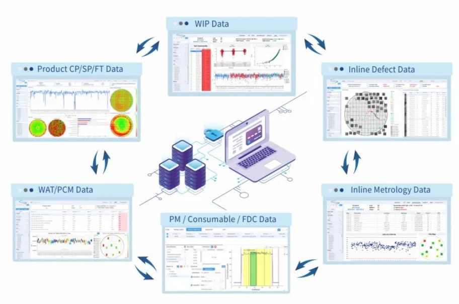通过DATAEXP全流程数据管理分析系统,可以帮助半导体企业统一管理端到端全产业链的数据,快速存取、关联整合从设计、制造到封装测试各环节产生的海量数据,提供高效、针对性的分析功能,有效地帮助半导体企业提升成品率和提高产品性能,以加速产品开发、提升成品率,进行有效的供应链管理。