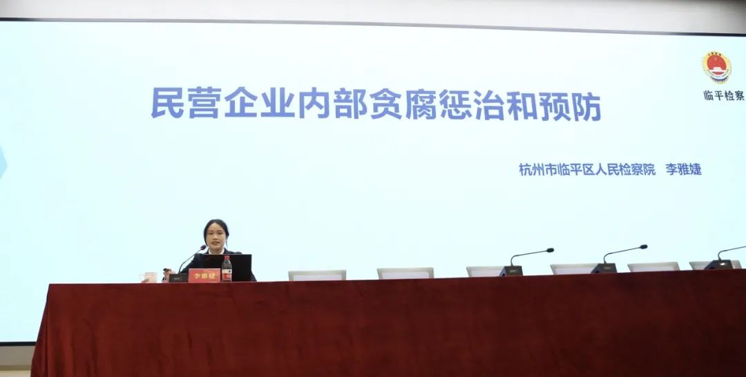 临平区人民检察院第三检察部四级检察官助理李雅婕作《民营企业内部贪腐惩治和预防》主题课程分享,介绍典型案例,提醒企业应加强防范意识,完善内部管理机制。