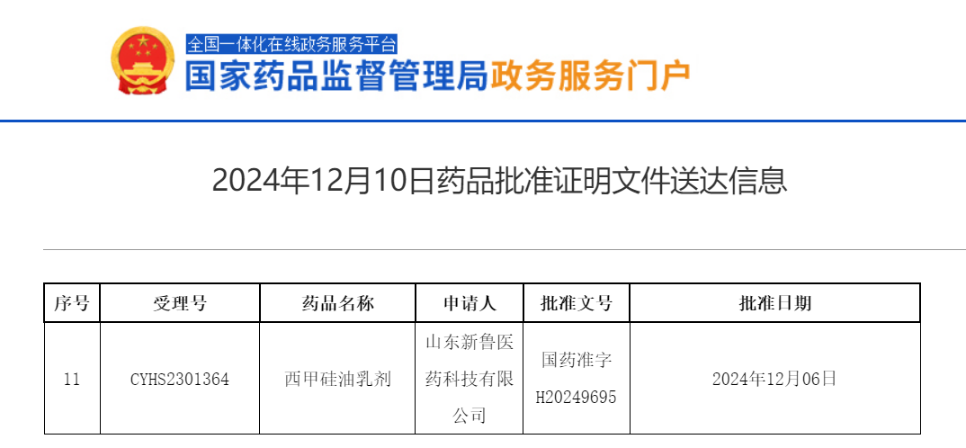 百诚医药通过专业、高效的技术服务,助力合作伙伴山东新鲁医药科技有限公司西甲硅油乳剂获批!