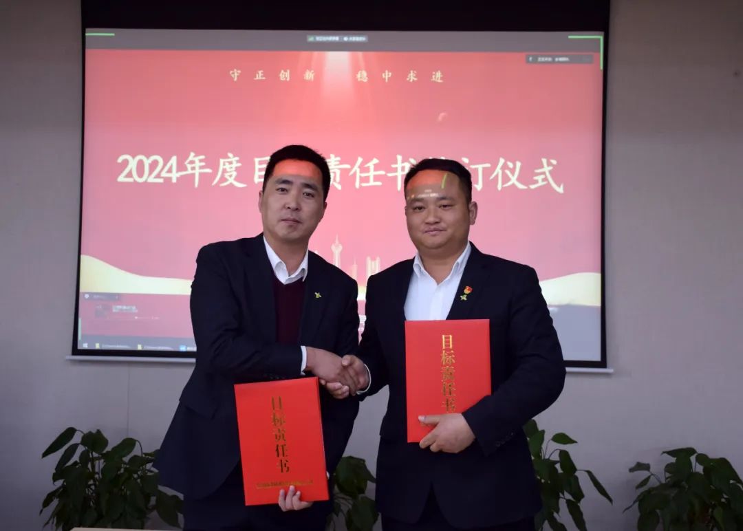 为进一步加强内部管理,明确新一年度目标方向,董事长王宜森和总经理刘殿华;总经理刘殿华与公司高管;常务副总裁窦逗和公司总监、区域总经理,各分管领导与分管部门单位逐一签订2024年度目标责任书。