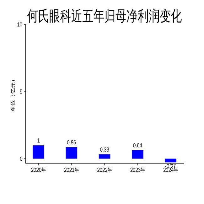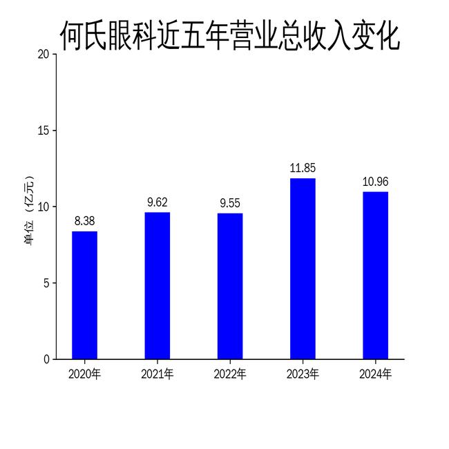 2024年,何氏眼科的营业总收入从2023年的11.85亿元降至10.96亿元,同比下降7.56%。毛利润也从4.95亿元减少至4.23亿元,降幅达14.55%。归属净利润和扣非净利润均出现大幅下滑,分别同比下降143.11%和152.03%。这一表现反映了公司在行业竞争加剧和医保支付方式改革背景下的经营压力。