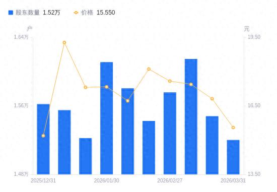 近一年(2025年3月31日至2026年3月31日),武汉天源A股股东户数从1.47万户,增加至1.52万户,增幅3.42%,区间股价下跌11.04%。