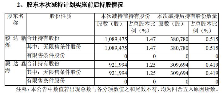 此前,强瑞技术于2023年5月16日披露了《关于股东减持计划完成及减持计划预披露的公告》(公告编号2023-028),公司股东毅达新烁、毅达鑫海计划未来6个月内以集中竞价方式合计减持公司股份不超过1,477,732股(占公司总股本比例为2%)。2023年8月21日,公司披露了《关于股东股份减持计划时间过半的进展公告》(公告编号:2023-053),2023年5月19日至2023年8月18日毅达新烁、毅达鑫海通过集中竞价交易减持13.55万股、13.79万股,共计27.34万股,减持数量占总股本比例0.37%。