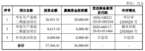 聚赛龙实际募资净额比原拟募资净额少5090.62万元。公司此前披露的招股书显示,公司原拟募资3.60亿元,分别用于“华东生产基地二期建设项目”、“华南生产基地二期建设项目”、“补充流动资金”。