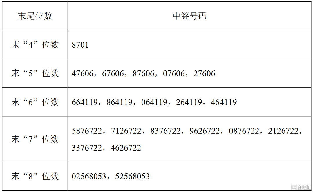 凡参与此次网上定价发行申购广州华研精密机械股份有限公司股票的投资者持有的申购配号尾数与上述号码相同的,则为中签号码。中签号码共有2.91万个,每个中签号码只能认购500股广州华研精密机械股份有限公司A股股票。